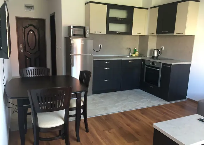 Wyposażony w udogodnienia do samodzielnego przygotowywania posiłków, takie jak pełnowymiarowa kuchnia, obiekt noclegowy zapewnia gościom miejsce do jedzenia, gdzie również można delektować się posiłkami. W 5-minutowej odległości znajduja się takie restauracje jak Sparta Pizza i Chichovcy. Obiekt noclegowy leży o rzut beretem od dworca autobusowego Pomorie Station-Pomorie-Taxi.